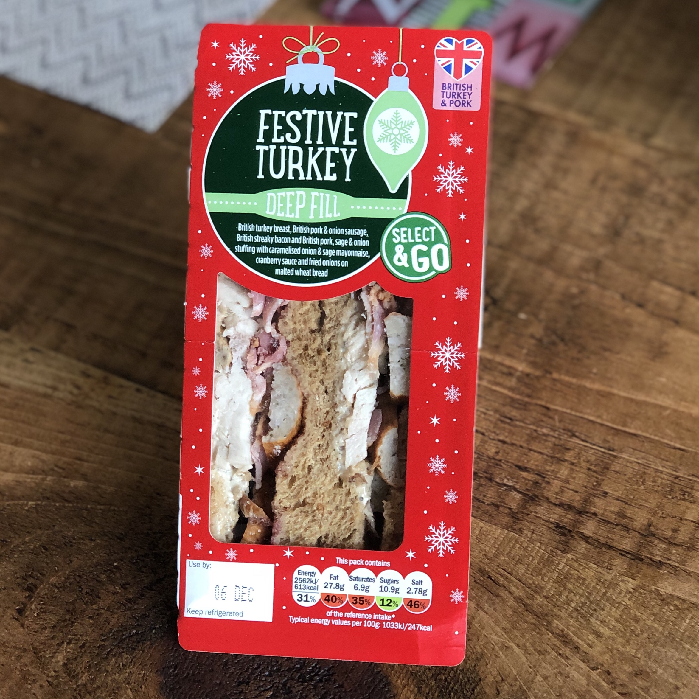 Boom! The blog lives on. If I only have beer and sandwiches for the rest of the month, I’ll be fine. And don’t worry, I’ll keep you posted on my fluctuating weight as the month drags on. Anyway, Slimming World is next to Lidl and I was getting some shopping and lo and behold the sandwich gods shined upon me and they had some Christmas sandwiches! A first for the blog. Are you excited? I am! Let’s get this over with.