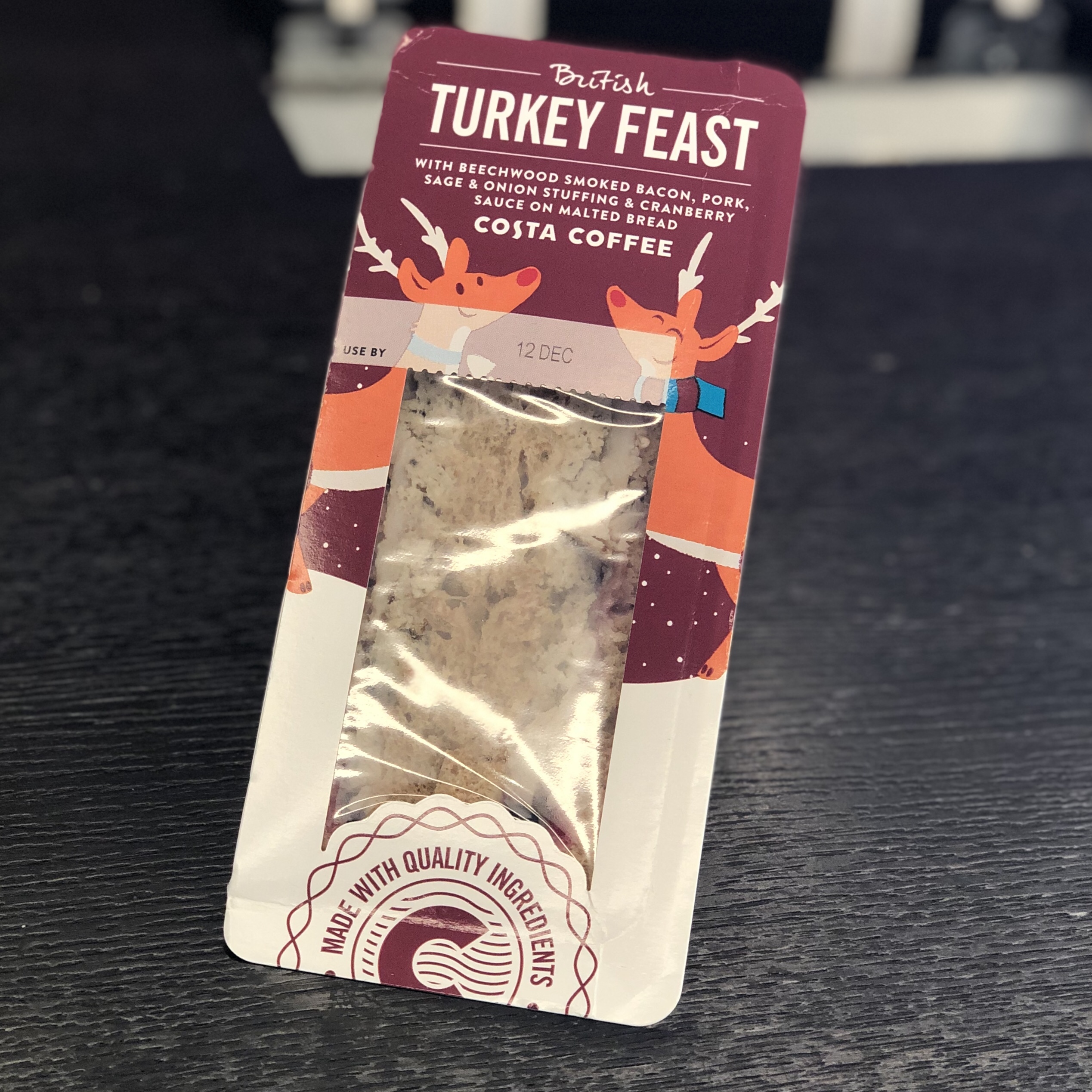 The bread is about an hour away from being stale. How have they achieved this? On the other hand, the contents are a bit mushy and heading towards being a paste. It still tastes alright, but Costa has really put in the bare minimum of effort here and churned out some old slop but you’ll buy it because you need to get a coffee and whilst you are there you may as well get your lunch, saves you going to two places and you’ve got to get back for that meeting anyway and you can eat it in the meeting because no one has lunch hours any more because they are socialist and oh what’s that song? I remember that. I loved that song. I couldn’t name the artist and it’s not on my phone or Spotify history but oh why has my card been declined. Shit I don’t enough money for this and on top of that it’s Christmas and how has it come to this? Why is this my life now? The future looked so bright.
