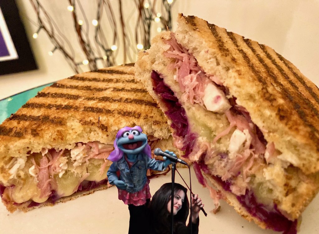 Pulled ham, turkey, sweet gravy, smoky butternut crush, Cheddar and red cabbage in Sourdough bread.