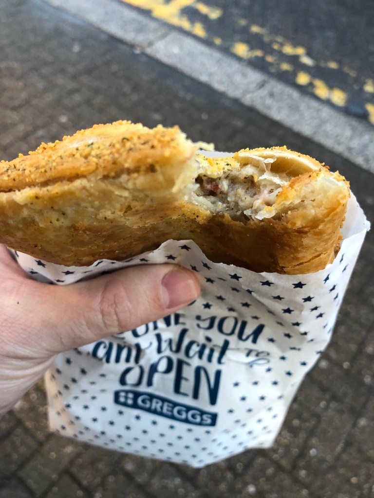 I don’t go to Greggs very often (look I’ve already mentioned I’m a ponce with two barbers) so I don’t understand why there is always a big queue. Always, any time of day. It’s mental. But I queued up and here we go….