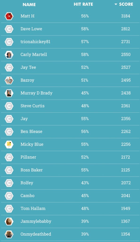 Speaking of former champion Bazroy, look at him creeping up the table to 6th after being near the bottom for so long! Too little, too late my friend.