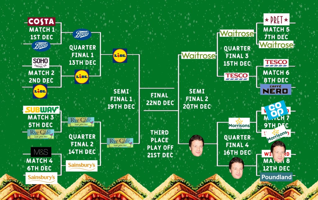 Although I reviewed their Boxing Day Curry wrap last year, I have never reviewed a standard Morrisons turkey sandwich before and I have to say that I really enjoyed it! Good on them. The bad news is, it wasn’t as good as the Jamie Oliver sandwich, also bought at a petrol station. So now we have our semi-finalists!