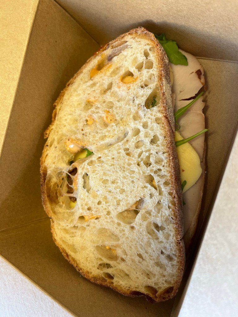 Free-range smoked turkey with Mayfield Swiss cheese, spicy homemade chipotle mayo and, of course, homemade bacon jam on Waste-Less sourdough