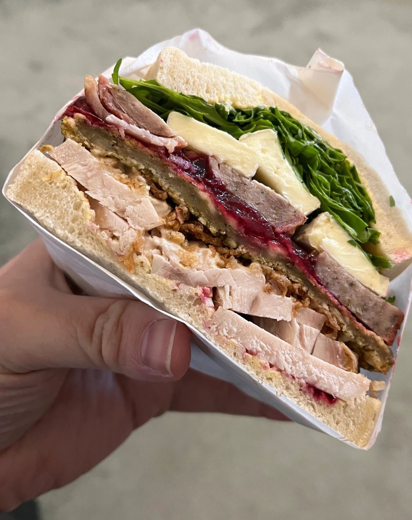 You get a lot in this sandwich, all the right flavours and it’s big so you feel like you are eating something nice, big and Christmassy. I got in a right mess eating it and my only regret is that a bit of sausage fell out of the sandwich, hit the floor and got covered in fluff and cat hair so failed the 3 second rule. A cracking sandwich and a shame they weren’t around for the World Cup of Christmas Sandwiches last year.