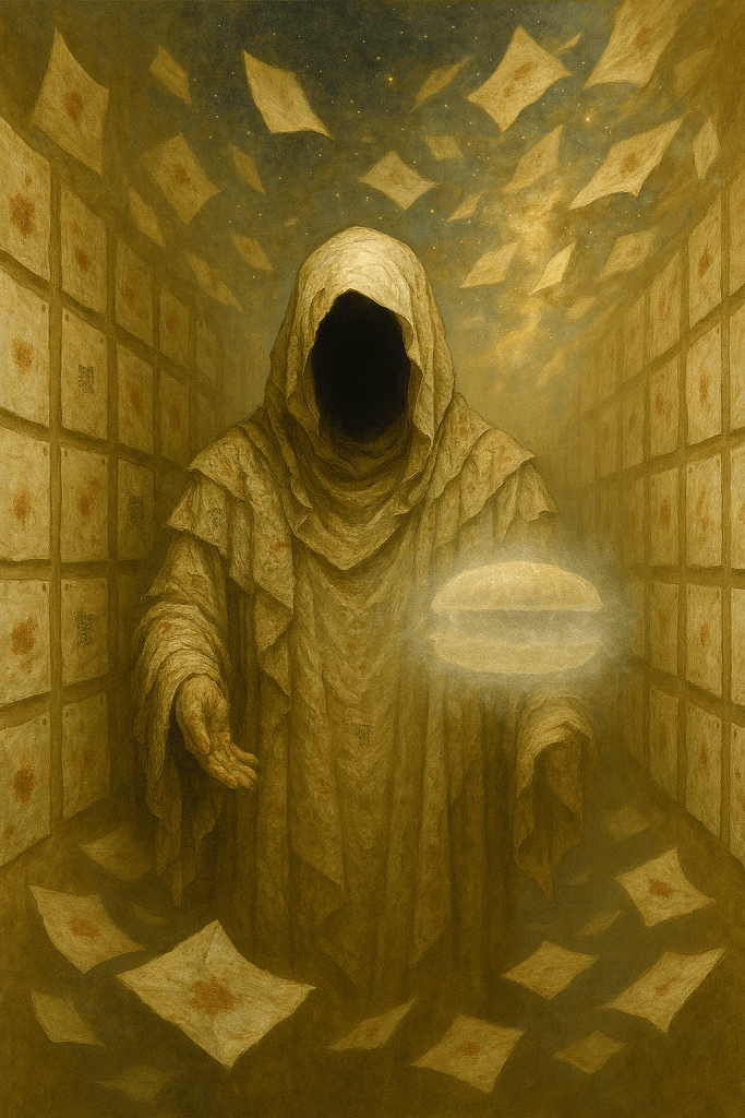 The figure stood where it always had. Its cloak was thinner now. The napkins frayed, some torn, some damp and clinging to its hood. It did not raise its hand. It simply looked at me — or seemed to — and from the folds came the final offering.