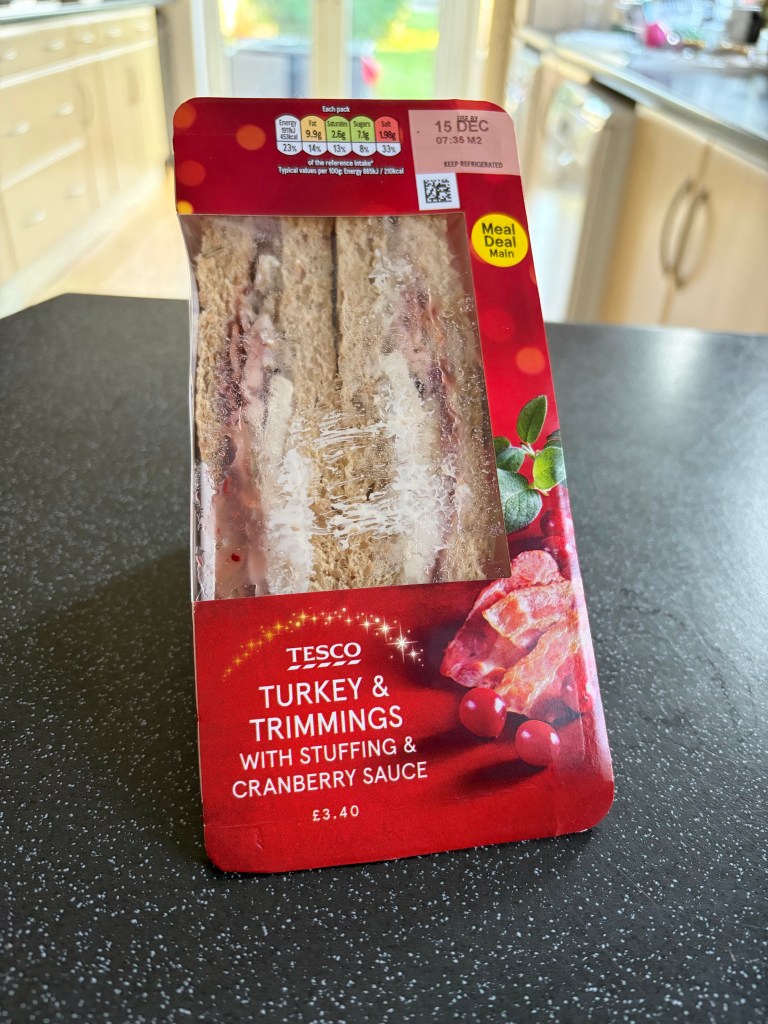 And I’m afraid that generic, downgraded sausage has caused an issue this year – it was very dry and chewy. Everything else was good – a big hit of sage from the stuffing, a nice amount of sweet cranberry sauce cutting through all of the savoury, and some really smoky bacon. But that dry, chewy sausage was right in the middle of all of it, spoiling it for everyone else and, more importantly, making the Tesco sandwich that I consider the perfectly adequate sandwich to judge all other Christmas sandwiches by a bad sandwich. Can we not rely on anything anymore? Kier Starmer has ruined this country. And my blog!